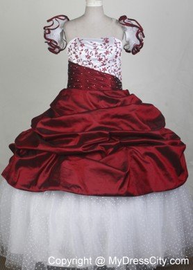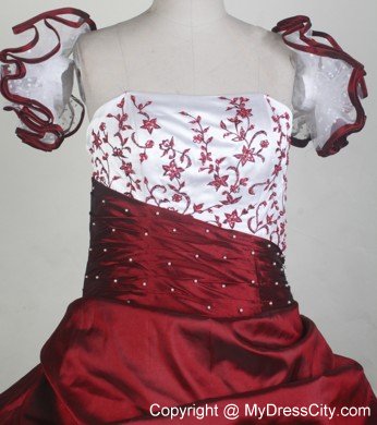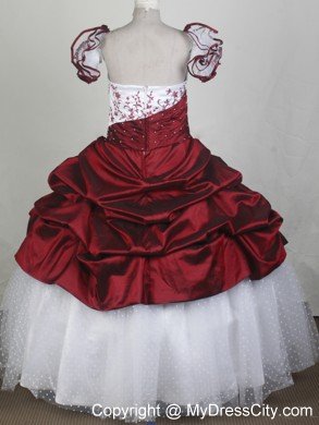 Two layers ball gown dress embellished with embroidery is absolutly the focus in your circle. The flowers on the shoulder feature the dress with cute element. Customize with your own special requirements.