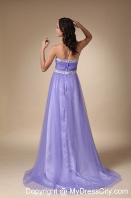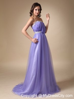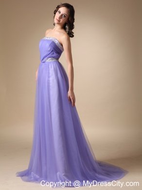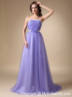 This beautiful dress has a sumptuous, translucent material that stretches over the fitted bodice and falls down to the floor with an A-line skirt. The strapless tops two bands on which is sparkling beadings on the top of the bust and on the waistline that cinches at the waist properly, reaching an echoing effect. And there have good looking ruched accents on the bust area. A tulle overlay the skirt cascading down to the floor makes the dress partically beautifuL. The skirt with zipper up back for great fit and a charming brush train consummates the dress to the end.