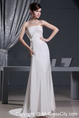 Elegant and modest! This dress is simple,but elegant and sweet. It starts as a strapless notched neck design with fitted waist. The long chiffon skirt extends to the back to be a brush train which will surely adding the charm of being elegant! Zipper up back completes the whole design. Just relax yourself!