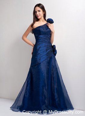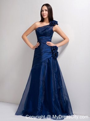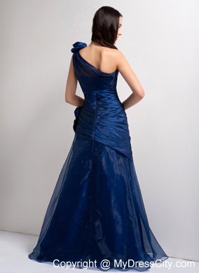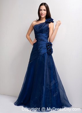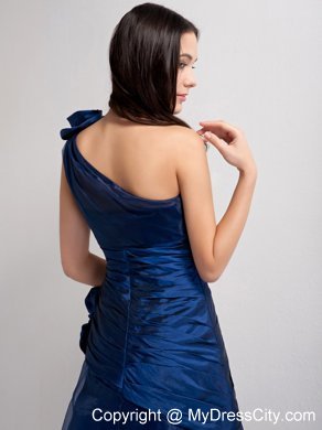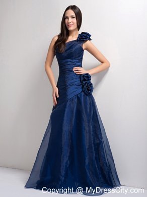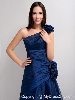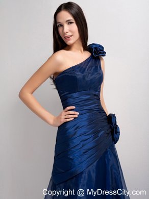 What an elegant gown! This dress features a one shoulder neckline bodice with a handmade flower on the shoulder which makes you look more charming. The asymmetrical ruching from the waist to the hips definitely flatter your figure with two handmade flowers on the side. You will walk flowy when you wear the dress because of the tulle skirt. A hidden zipper up back finshes the perfect design.