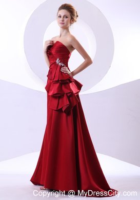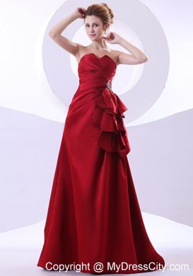 This wine red dress features a sweetheart neckline with pleated bodiece. The waist is accented with gorgeous beading and fair ruffles. The floor-length skirt is quite simple yet classical. A lace up closure completes the design and secures it in place. It is so gorgeous in design that you will definitely be the lightspot in your party or any formal.