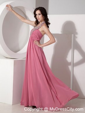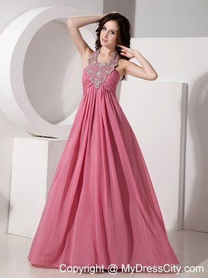 This shimmering designer prom dress has an understated elegance that is perfect for your prom or formal. The pleated and fitted bodice with a high empire waist highlights your body curve. The halter top style entrusted with intricate and irresdecent beads design, which ia absolutely a feast for eyes! The flowly skirt sways beautifully across the floor when you move, as if you're floating on air.
