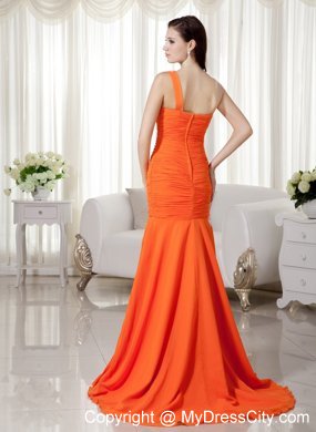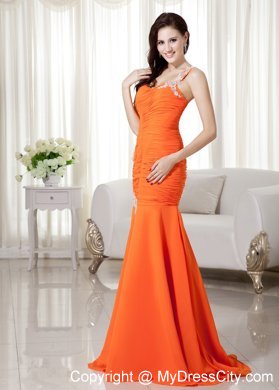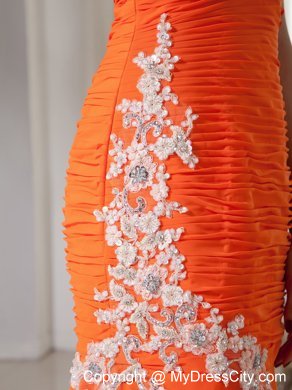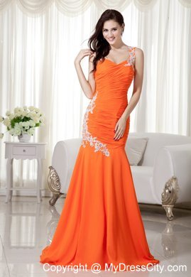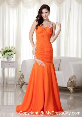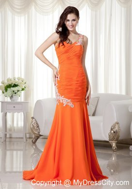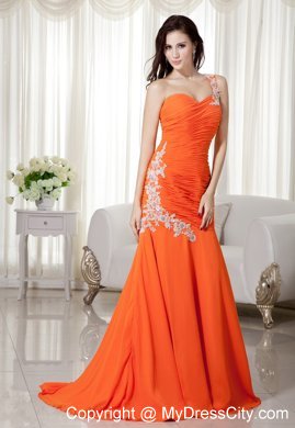 Chic and elegent! A fitted, one shoulder bodice made of an all-over ruching and appliques accenting the waist part. The floor-length skirt has a sweep train. The orange sweetheart dress shows your figure perfectly. You will be the most attractive one in the party when you wear this dress. A simple zipper up back completes the look.