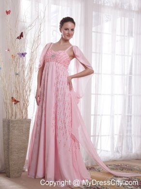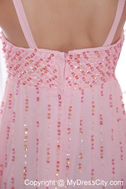 It's made of a special sequince fabric. It features a sweet heart neckline ,two straps and shine embellishments.A sheath of fabric is woven into the bodice and flows across the shoulder like a shawl, which is the most stunning focal point of this gorgeous prom dress. A zipper up completes the design.