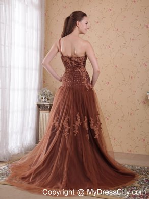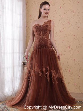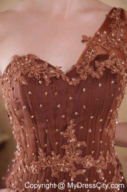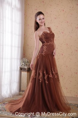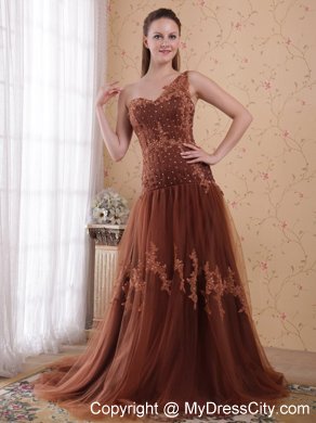 Go for glamour and a fabulous flattering fit with this prom dress. This prom dress is characterized by scattered embroidery appliques and sheer tulle overlay. The top one shoudler bodice is dotted with scattered dazzling beadings in addition for accent.The skirt is attached with a train that beautifies the dress . A hidden zipper makes for easy off and on and secures the dress in place. This wonderful dress will capture the lighting beautifully!