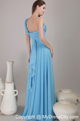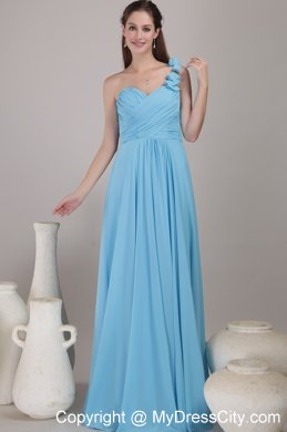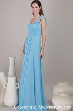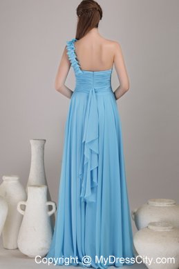 Add a romantic edge to your special occasion in this perfect bridesmaid dress! The one shoulder adorned with many tiers little blue chiffon superposed to add a little cute. A modest sweetheart and twisted ruched bust completely enhance your glamour. The skirt made from airy chiffon flows elegantly with a hankerchief drapping down in the back which beautifies your dress. Capture this bridesmaid dress, you will seize your important day!