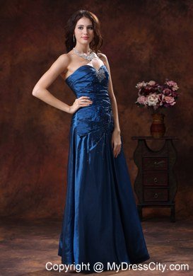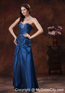 This gorgeous gown is just perfect for any would-be prom princess. It's made in a sheath style with sweetheart neckline and an elegant ruched pattern in the bodice. Sparkling beads accent the bust and the hips, which reflect the light beautifully. The floor length skirt hugs your frame in pleats and folds. The lace up back completes the look. A very figure flattering design.