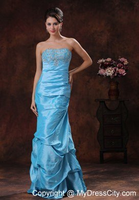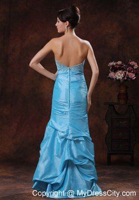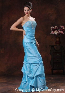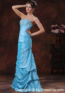 Traditional ball gown never go out of style, this is aqua blue prom gown is a typical example. This gown features a pretty strapless bodice with lots of pretty beadwork. The mermaid skirt is floor-length and is made from many tiers of ruched fabric, and the low cut back is finished with a hidden zipper. This elegant prom gown dress is a perfect choice for you next big day.