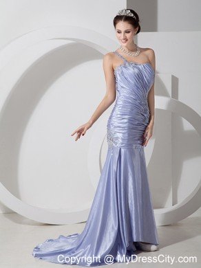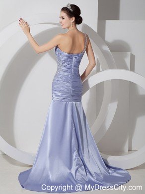 A corset style zipper up bodice creates a sensational silhouette on this one shoulder evening gown for prom. An elegant prom dress or pageant gown available in 5 amazing colors with a single shoulder strap and sparkling beaded accents on the heavily pleated bodice. A hidden zipper makes for easy off and on and secures the dress in place.