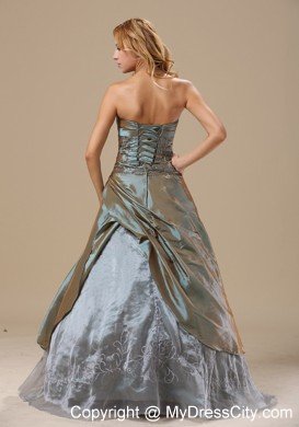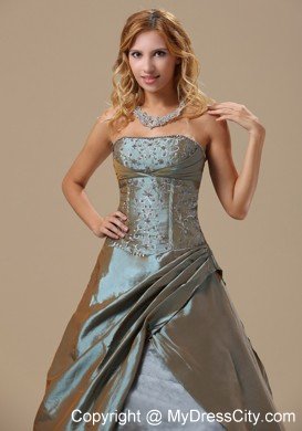 Simply designed dresses can also make a dramatic first impression, this one is a perfect example. It features a strapless bodice with a simple straight beading trimmed neckline and a pleated texture. Delicate ruchings embellishement adorns the left waist while the floor-length skirt is sleek and smooth with no redundant. Completes the design with fitted with lace up back.