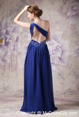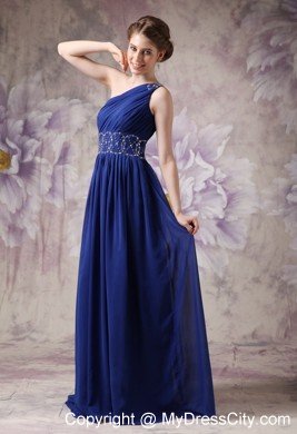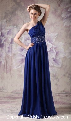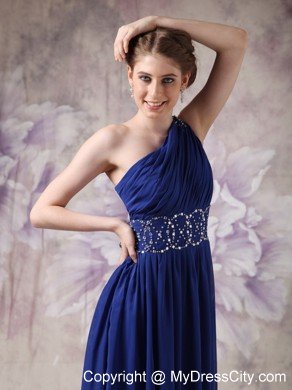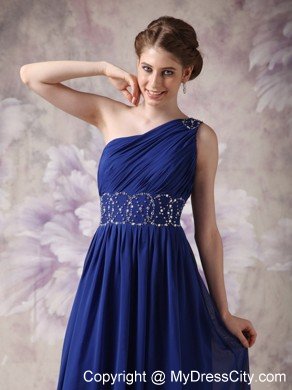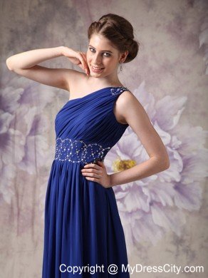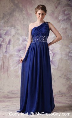 Simply designed dresses can make a dramatic first impression, just like this one. It features a one shoulder toga-inspired bodice with a lovely pleated texture. An asymmetrical band adorns the midsection and features intricate beadwork throughout, which attracts countless of appreciated eyes. The floor-length blue skirt is made from soft layers of fabric and moves beautifully with you when you move. Wearing this dress, you will sure be the party queen.