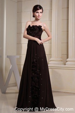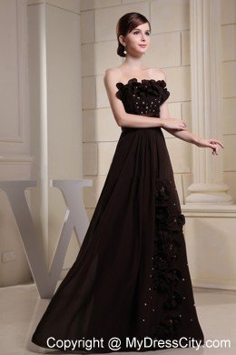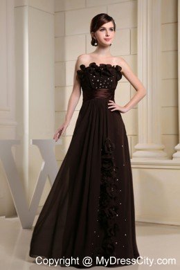 Do you want to be the belle of your party? This brown prom dress will make your dream come true. The fitted bodice with strapless neckline features chic handmade flowers and delicate beadings. Your waistline is curved by an exquisite ruched waistband. The chiffon flowy skirt is also decorated with a line of beautiful handmade flowers and beadings, giving the whole dress a perfect view. Cute zipper closure allows easy off and on and secures the dress in place.