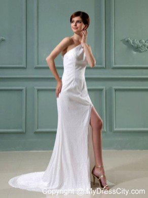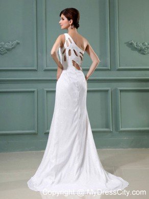 This stunning style is perfect for your evening. The all-over shimmering fabric will definitely sparkled your evening! One shoulder strap and high slit design defined the dress perfectly. The special designs in the back completes the sexy look. The skirt flows elegantly to the floor. A great choice for your evening.