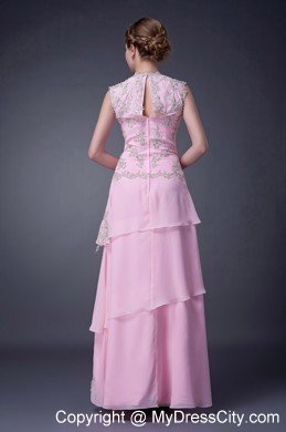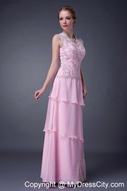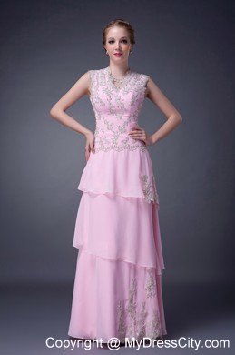 Thrilling elegance abounds on sublime floor-length evening dress!The sleeveless bodice plunges to a lacy V at center front. Rich, vintage-look lace embelliments thoughout the bodice,at waist side and hemline create a one-of-a-kind beauty.The fashionable tiered overylays pour to the floor with yards of long, flowy material.