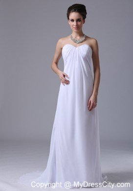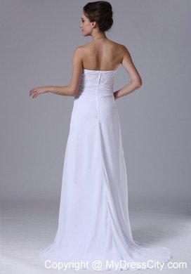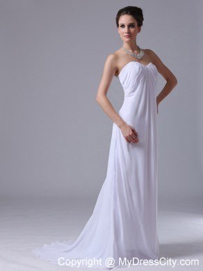 Look like you just stepped from the pages of a bridal magazine in this gorgeous designer-inspired gown. It is made from chiffon and features a sweetheart neckline and delicated pleated bodice.The beautiful full gown has a lovely train. If you're looking for a high-end dress without the high-end price tag, this is definitely one you should consider.