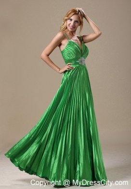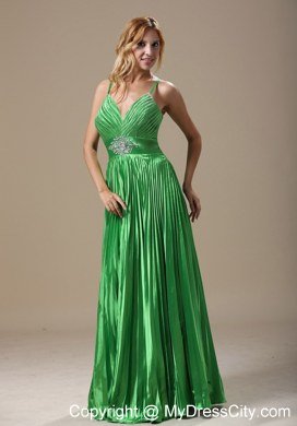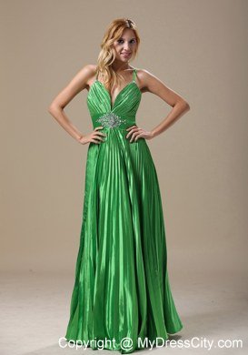 Fabulous and stunning are the two words coming in your mind when you see this green prom dress at your first sight. The dainty bodice adorned with two spaghetti straps, subdued ruchings, and a beawork decorated waistband, which shows your natural waistline obviously. The floor length skirt with exquisite ruchings flows freely to conture your slim figure. A hidden zipper up back completes this wonderful design.