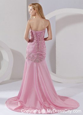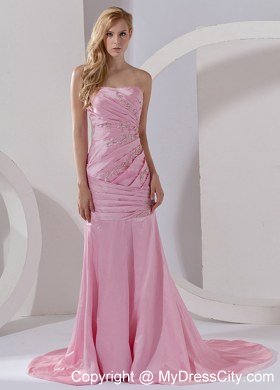 Be elegant and fashionabel! This strapless dress features a ruchedbodice gathered toghether at the left side of the dress. The dress is also embellished with appliques which highlight the whole look of the wonderful dress. The court train extended by the floor length skirt adds you the charm of being elegant and fashionable. Lace up back allows great fit.