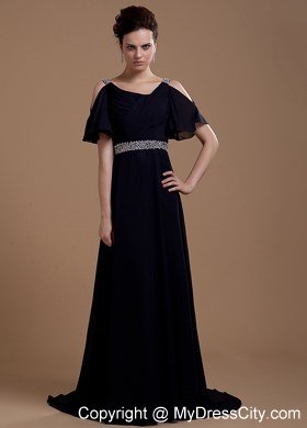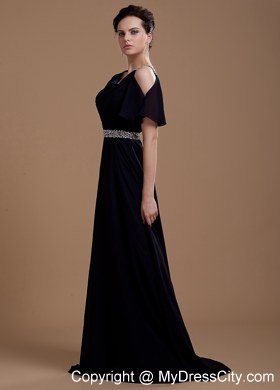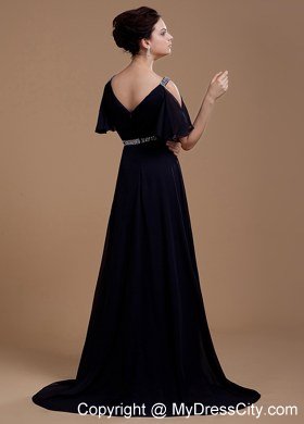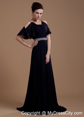 This elegant vintage-inspired dress is sure to please even the most picky fashionista. It features pretty sleeves and a v-neckline. The bodice is also ruched that accentuates your curves beautifully. The floor-length skirt is perfect for both styles. The waist is overwhelmed with beading. The zipper up back and gorgeous brush train completes the look. A very classy dress for any event or occasion.
