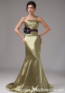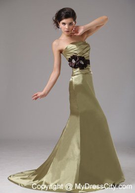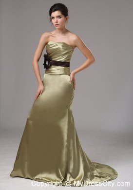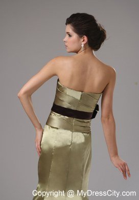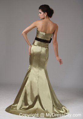 This gorgeous gown is just perfect for any would-be prom princess. It's made in a sheath style with strapless neckline on the ruched bodice. A lovely brown bowknot adorned the thin waistband in the empire waist makes the dress sassy and charming. The mermaid-style skirt hugs your frame and the brush train adds extra elegance. The zipper up back completes the very figure flattering design.