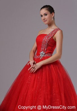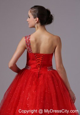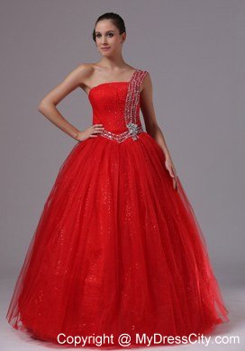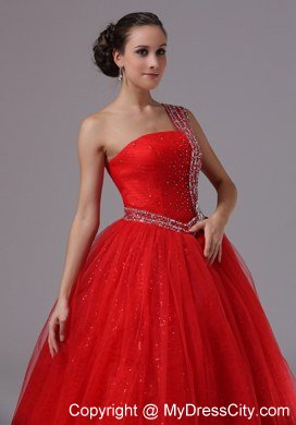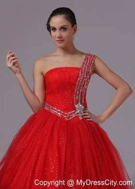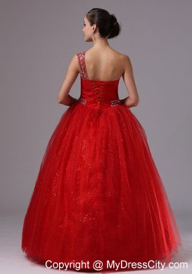 Stunning and amazing! The fitted bodice features a straight neckline and the several shinning rows of baedings extending as a one shoulder strap to the back that adds more interests. Inverted-V empire waist is figure flattering and accented with jewel detail for extra sparkle.The amazing A-line skirt is reminiscent of the old fashioned hoop skirts and is made from sequince fabric under the tulle overlay which add another dimension of beauty. A lace up closure completes the perfect design!