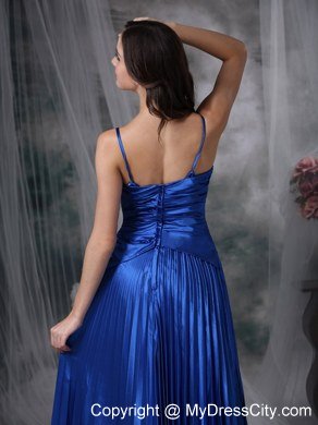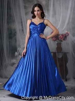 A gorgeous dress for prom it features two spaghetti straps. And the sweetheart bodice is heavily ruched with fine teffeta fabric. A lovely pleated A-line skirt gives this bule prom dress the perfect finishing touch for prom or homecoming.