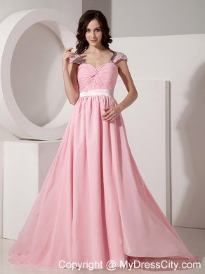 Do you want to experience the feeling of being the spotlight? This special designed prom dress will make your dream come ture. Magnificent long prom dress has slim silhouette and stunning cap sleeves design. Rows of beaded embellishments intersect the trim make the dress flatering all night. Wow! You must be deeply impressed by the pleated bust, the design shows off your glamor better than others! A-line skirt is full and shapely, a zipper closure in the back secures the dress.