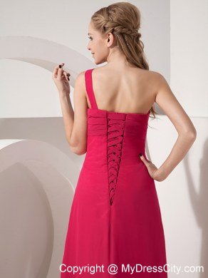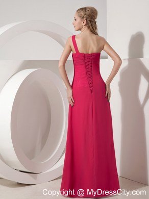 Stunning and fabulous! This hot pink dress features one strap neckline with ruching in the bust. The skirt falls in soft, clean lines to your feet. The back of the dress has a lace up closure that secures the dress in place and makes for easy off and on. Just a beautiful dress for any event on your calendar.