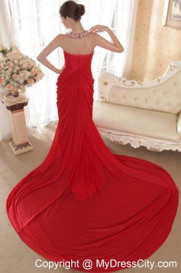 Imagine you just stepped from the pages of a fashion magazine in this stunning gown. It features a sleeveless bodice with a full beaded halter top neck which flows down to the midsection. The skirt is created from many soft pleats and folds that create a enchanting effect and the hem pools in a puddle of fabulous fabric at your feet with a sweep train in the back. Just a gorgeously simple dress for any event or occasion.You'll be the lightspot in it.