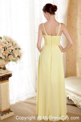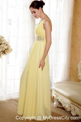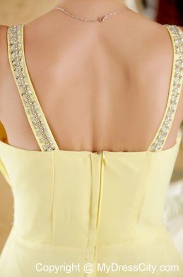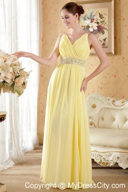 This romantic yellow prom dress dropped naturallly and characterd with a V-neckline in the front that you will looks sexy yet decent when you wear it.Heavily beaded on the wide waistband modifites your charming figure and same beadings on the back strps to complement with each other.You will be the shinning star when you go out in it.