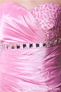 This dress will difinitely be your best choice to an unforgetable prom! It is bedecked with a lovely sweetheart neck with ruching and crystals on the bust. The floor length skirt with two pleathes, one under the bust, the other on the hips, will absolutely curves your perfect figure and make you shinning like stars. Simple zipper up back finishes the gorgeous look.