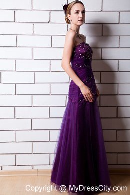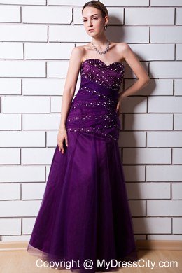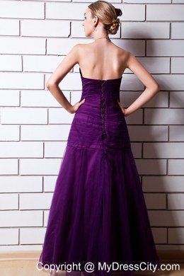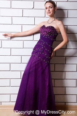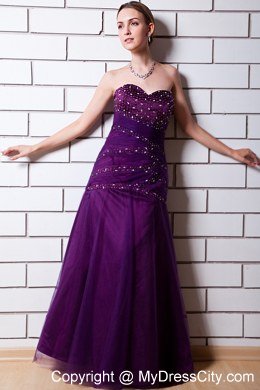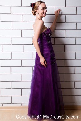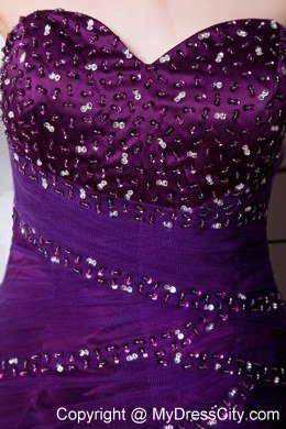 This dress will surely gain wow! The romantic color of purple gets a feeling of charming and enchanting. It is channeled with a lovely sweetheart neck and totally crystaled bust. Gorgeours tulle and beading zigzag on waist flatters your curves. The empire skirt flows to the floor with flowy and high quality tulle outlayer. The classic back completes with lace up closure which secrures the dress in place. You will be the hotline in this dress on the unforgettable night!