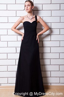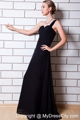 Be the belle on your prom in this simple yet elegant black dress. It's chic and graceful for the one shoulder strap and lovely sweetheart neckline. Crossed ruching flatters your curves. The flowy chiffon continues to make the already sexy dress more gorgeous. Zipper up back finishes the amazing design. It is a wonderfull dress, so glamorous, so stylish � perfect for any occasion!