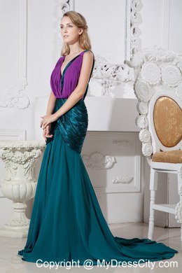 The notable dress creates a touching effect which makes you the hotline. It features a two layers V-neckline which may show your sexy facet and the ruchings on the hip accent your slim figure. What's more the two layers dress will highlight your saucy.The chapel train will make you more attractive. You're sure to land on everyone's best dress list.