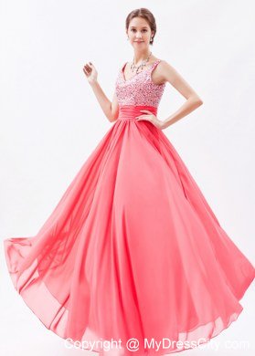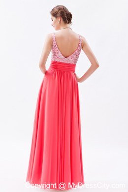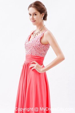 Sheath-style dresses are the way to go if you are looking for a style to show off your slim curves. This one is a perfect example of what we mean. It features a V-neck, same V style in the back with a delicate button back along to the bottom, which undoubtedly adds the charming and sexy feeling of this dress. The fitted bodice is encrusted with stunning beadwork throughout, while the graceful skirt in soft chiffon fabric flows freely to the floor. Just a very flattering design for any body shape or style.