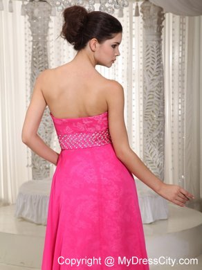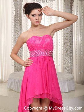 Hi-lo hemlines are hot this year, and this gown has one that is sure to please! It features soft ruffles along its length which add extra flair to the look. The subtle sweetheart neckline of the strapless bodice is accentuated by dramatic ruching; a contrasting embroidered belt ties the look together. The inside layer covered by lace fabric is another delicate part of this dress. The hidden zipper up closure is another considerable design of this gown.