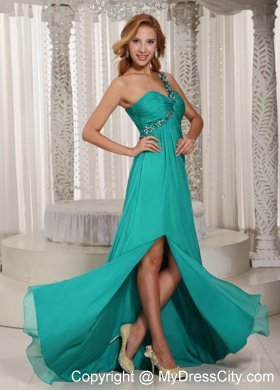 You will fall in love with this dress when you look at it at the first time. This one shoulder prom dress features a sweetheart neckline with a fitted bodice. The flattering ruches accentuate your curve. The exquisite beadwork hights this graceful dress! The long-length skirt with high slit has a sheer tier that will let you floang through the party with her perfect and flawless figure. The zipper up completes the overal effect. You will be the most sexy girl in this dress!