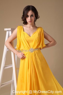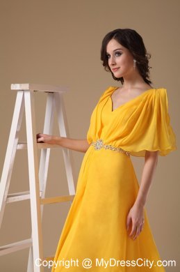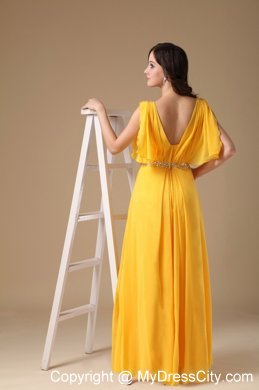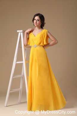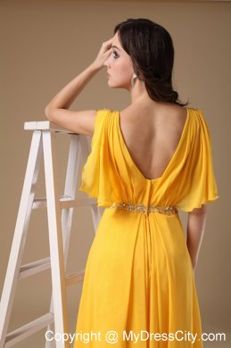 Bold and beautiful are two words to perfectly describe this dress. It features a gorgeous butterfly sleeves with V-neck. The waist was decorated with beading just like a belt. The floor-length skirt is smooth and elegant, the back of the dress has a grace zipper closure. Wearing this dress and you will be the unique one.