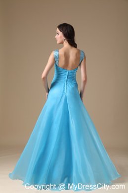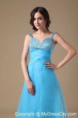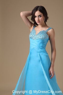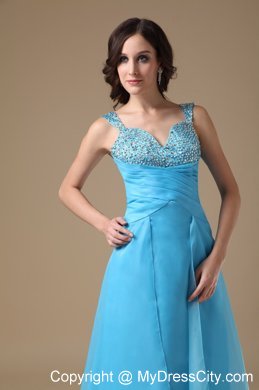 It's tough to beat the style and glamour of this strapless aqua blue A-line gown with classic spaghetti straps! You`ll adore its chic, classic sweetheart necklin.The dazzling and shimmering embelished beads spice up the style of the fitted bodice which gives way to ruched accents around the draped waist.The flowing skirt with split front begins at the high waistline and pours down smoothly from there.