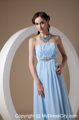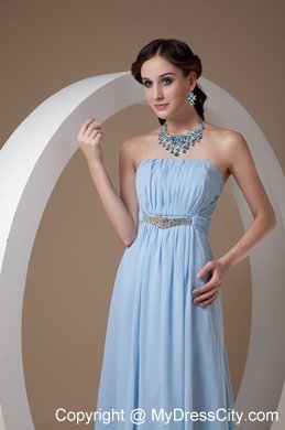 Sexy strapless design does not lack of stability and sex yet elegance, just like this one. The stunning bodice is adorned with embellished beadwork under the bust and exquisite ruchings. The empire skirt flows freely to the floor to create a beautiful brush train. A hidden zipper up in the back completes this fabulous design.