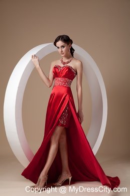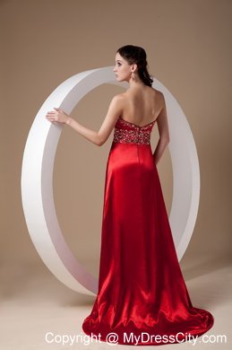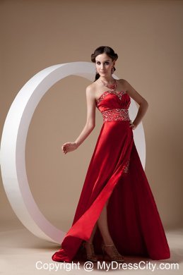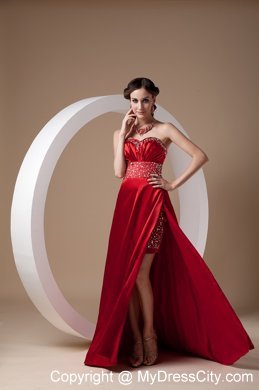 Simply gorgeous! This wine red prom dress features a sexy sweetheart neckline and a intricately ruched bust. Sparkling beadings on the bustline and the high waist ensures a perfect fit for any figure. A smooth full-length skirt has a side slit on the right while a mini-length skirt underneth is adorned by dainty beadings. The hidden zipper on the back completes the fabulous look. You will love it for sure.