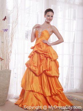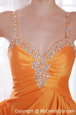 You will showcase your glamour in this elegant prom dress! This gorgeous dress has a high waistline and a low sweetheart with spaghetti straps mounted with constrasting beadings accentuating your bust and curves. The long and full skirt has many peek-a-boo layers to flatter your slender figure! Such an amazing prom dress, why not capture it?