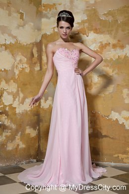This pink strapless prom dress is your best choice to attract the most attention no matter where you show up.The fitted bodice with a sweetheart neckline adorned with exquisite beadings and embellished appliques in the bust area makes this gorgeous dress graceful and tasteful.The floor-length skirt flows freely to create a beautiful sweep train.A stunning zipper up closure completes this pretty design.