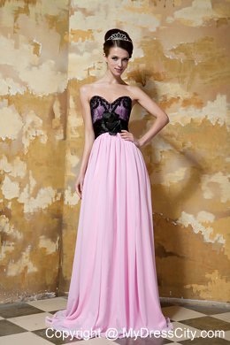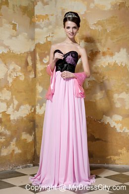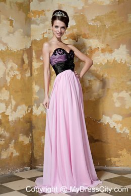 Beauty and comfort combine to create this pink sweetheart style.It features black tulle on the outside of the bodice,which makes you look sexy and seductive,the beading on the top part also add more details of the bodice.The pleated waistband and the big flower on the waist flatter your slim waist. The skirt falls in soft, clean lines to your feet.
