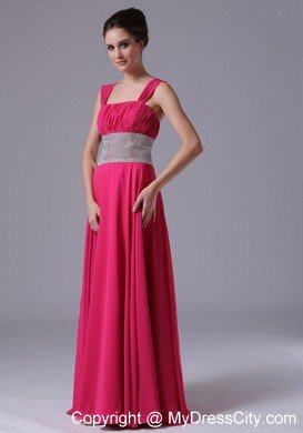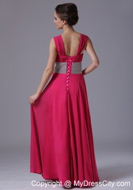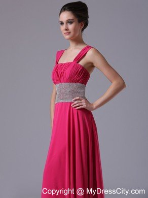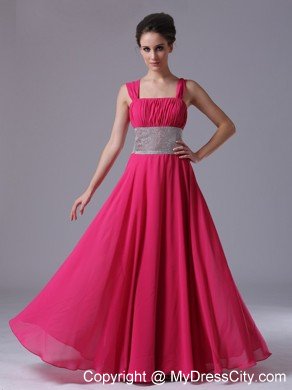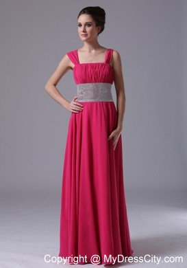 Twirl and whirl your way to an unforgettable evening in this festive, glamorous fushcia prom dress! The fitted bodice with two wide straps is completely coated in fine, shimmering, gorgeous ruchings and the empire waist is defined by a chic brooch in the that's also heavily embellished. The soft floor length skirt shows off the beauty of your long legs. A lace up completes the look.