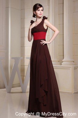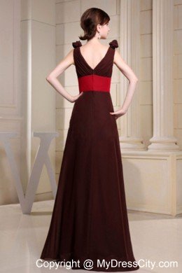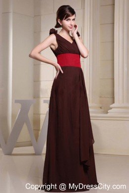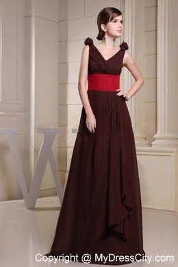 It is truly an example of high end couture fashion nowadays! You work hard to stay in shape so show off your curves in this sexy brown chiffon dress. A ruched floor-length dress that clings to your curves with deep v-neck neckline with gorgeous hand made flowers on the straps. The contrasting sash creates a new style that will look amazing as you in the crowd. A zipper up completes the look.