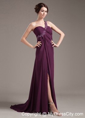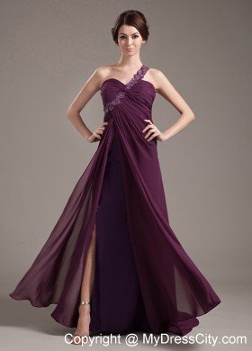 You'll absolutely love this flirty strapless ball gown for prom, cocktail or special occasion party. This burgundy prom dress features a ruched bodice and one strap encrusted with appliques and beadings. A seductive high slit lets you glide across the dance floor with ease. The floor length chiffon skirt flows beautifully with a loose fit that will make it easy to dance the night away.