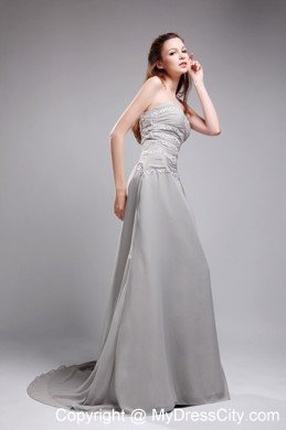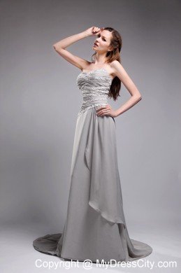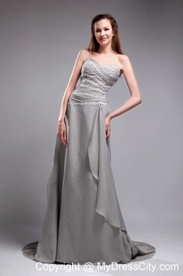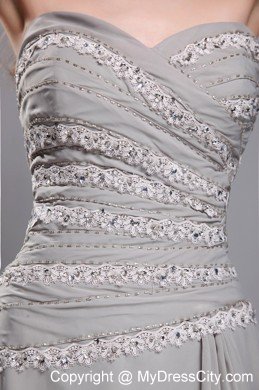 Sweetheart adorned by beadings and appliques add the glamorous feeling. Ruched into the side of the waist and form a ruffle design, accenting your gorgeous status.A-line silhouette shows your slim curves perfectly.
