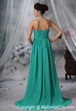 Simply gorgeous of this turquoise blue prom dress is. It features a gorgeous strapless bodice with the ruching and a waistband characterized by the embellished pleats that makes the design so elegant. The floor-length skirt definitly reveal your slim figure. A brush train swag pretty when move. The zipper up closure shows your beautiful back and finishes this stunning dress.