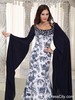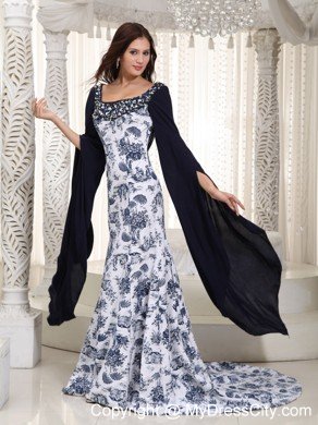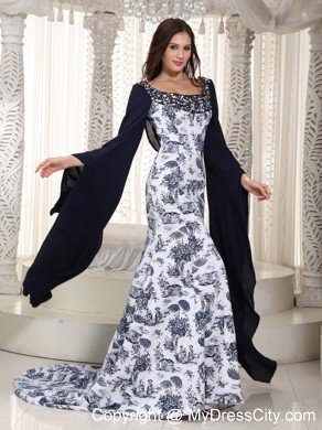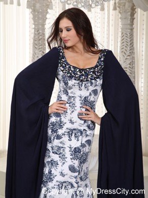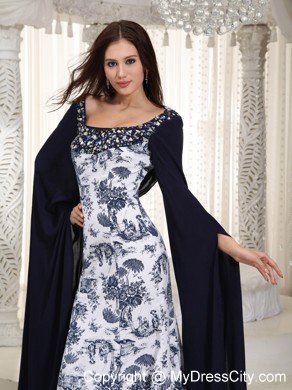 Seize the day at your 2013 prom or formal with a sensational long floral print dress from Fashionos. Bold beautiful colors, a modest straight neckline, and embellished bustline give this long dress a head turning style that will have all eyes on you at prom. What's more, airy long sleeves and the circular trailing add elegance and gorgeousness to this prom gown dress.