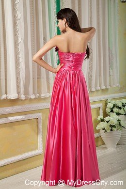 Opulence is the word written all over this dress. It truly is an example of high end couture fashion. It features a strapless bodice with light sweetheart neckline in lovely handmade roses. the whole ruched bodice shows your figure well. And a bunch of same hand made roses decorates the midsection of the wasitline. The skirt has a column shape featuring a floor-length hem. The zipper in the back of the dress secures it in place and makes for easy off and on. A great choice for any event on your calendar.